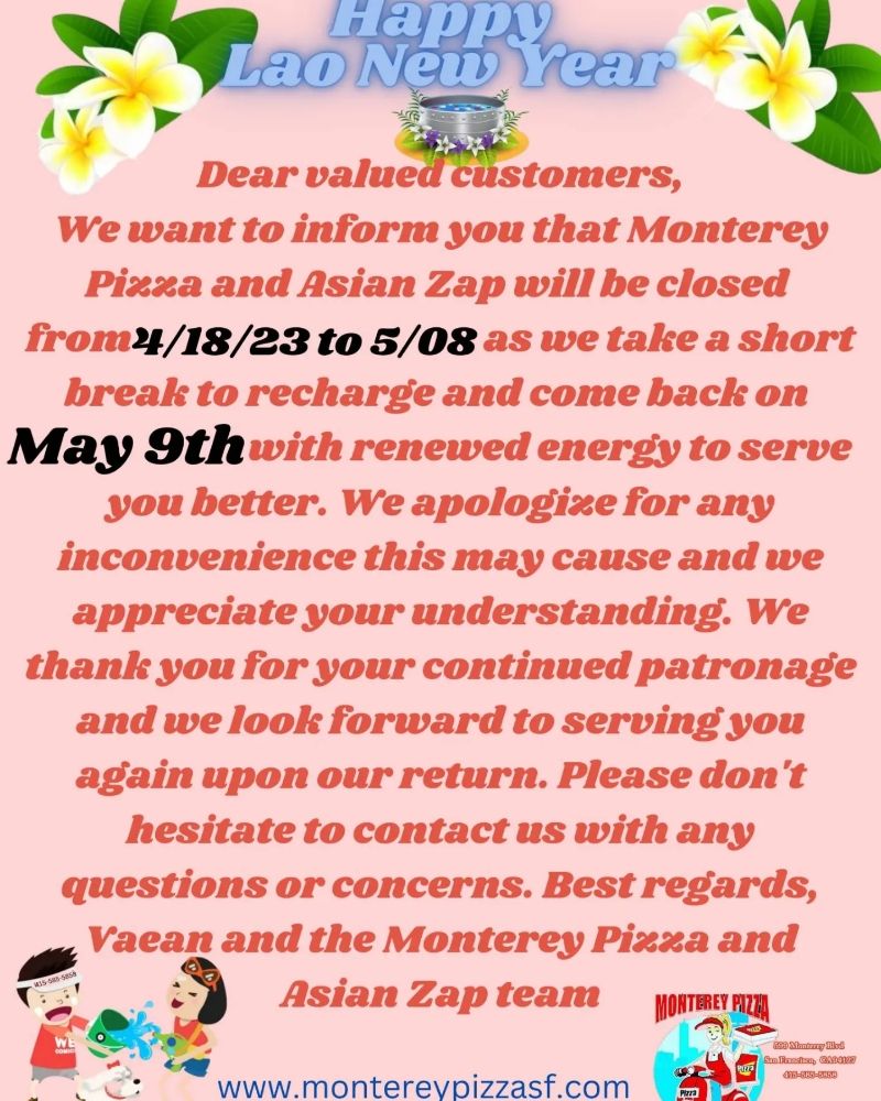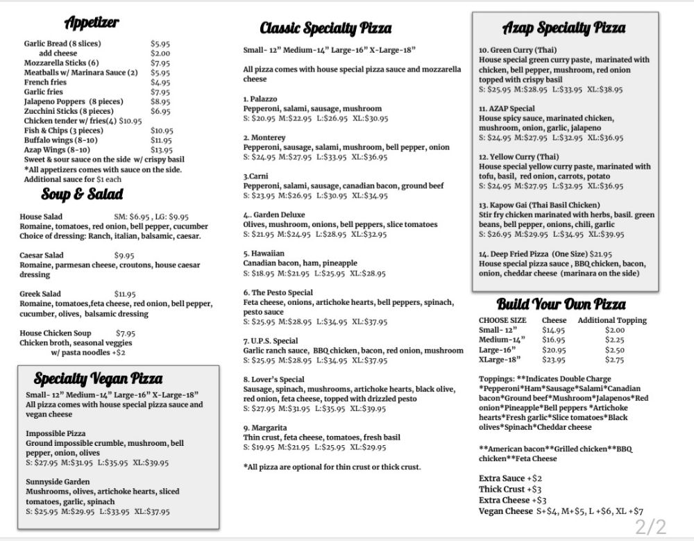 Introducing Monterey's Pizza Alexandria, a delightful fusion of traditional Italian pizza, Laotian flavors, and fresh salads. Located in the heart of Alexandria, VA, this cozy eatery offers a diverse menu that caters to various cravings. The standout appetizers include flavorful Garlic Bread and crispy Azap Wings, which pair perfectly with a cold drink.