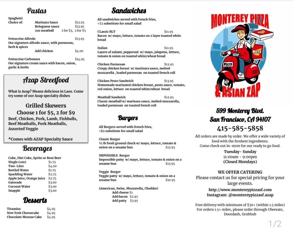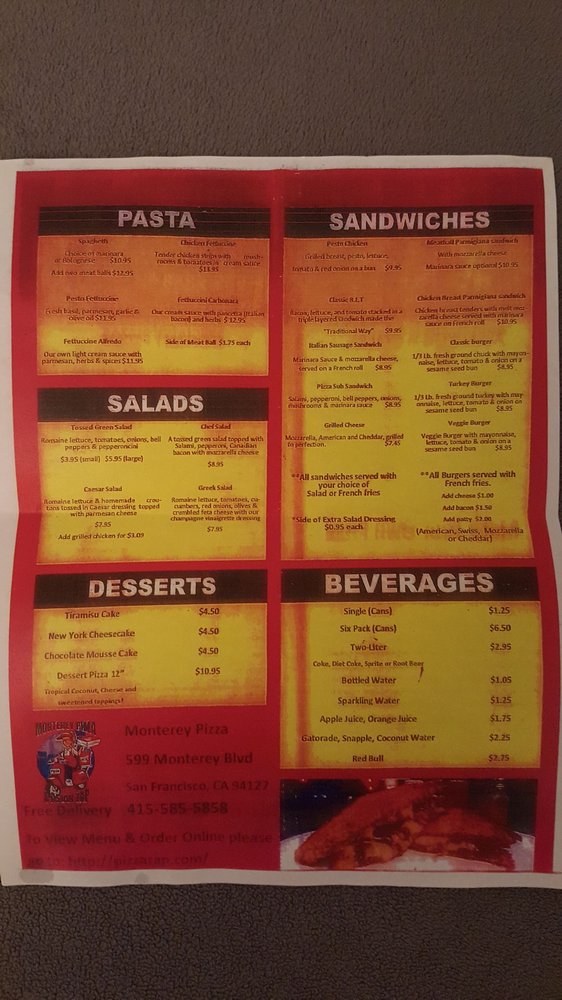 Monterey's Pizza Alexandria Menu (Update 2025)
